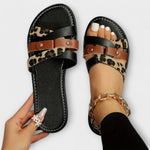 Luce las últimas tendencias de verano con estas sandalias de leopardo con tiras cruzadas. La suela plana y el diseño ligero garantizan comodidad durante todo el día, mientras que la combinación del estampado de leopardo con el acabado en imitación de cuero le da a tus atuendos un toque moderno. Son una elección perfecta para el uso diario y para días relajados de vacaciones en la playa o en un café.