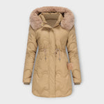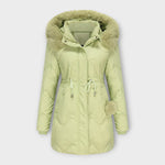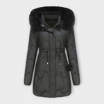 Diseño elegante: Con capucha y puños ajustables, este parka combina detalles funcionales con elegancia, para que esté lista para cualquier ocasión.