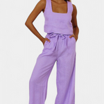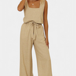 Marta | Conjunto de Lino con Blusa sin Mangas y Pantalón Fluido