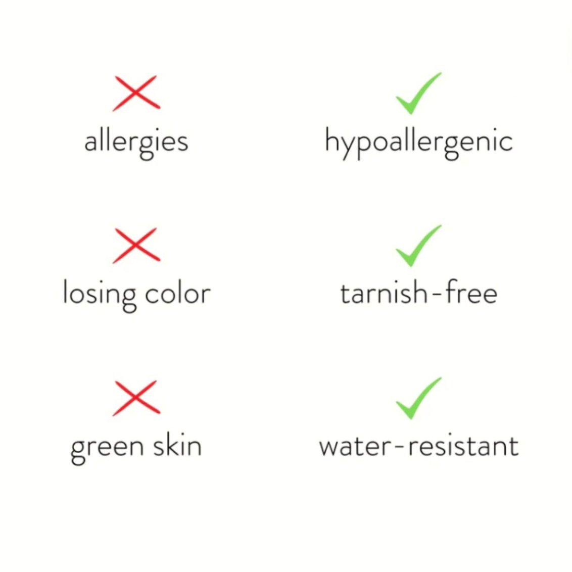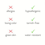 Fabricada en acero inoxidable resistente al agua, nunca más tendrá que preocuparse por el desvanecimiento o el deslustre de la joyería.