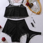 Manon Top De Malla Transparente Y Conjunto De Pijama Corto Suave Y Ligeramente Confortable