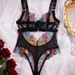 Monica Conjunto De Lencería En Malla Elegante Con Bordado Floral Y Detalles Recortados