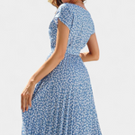 Refinado, femenino y con encanto bucólico, el vestido Marta evoca la elegancia de un día bajo el sol entre campos en flor. Su escote redondo y cintura ceñida enmarcan la silueta con naturalidad, mientras la falda plisada aporta movimiento y gracia en cada paso.