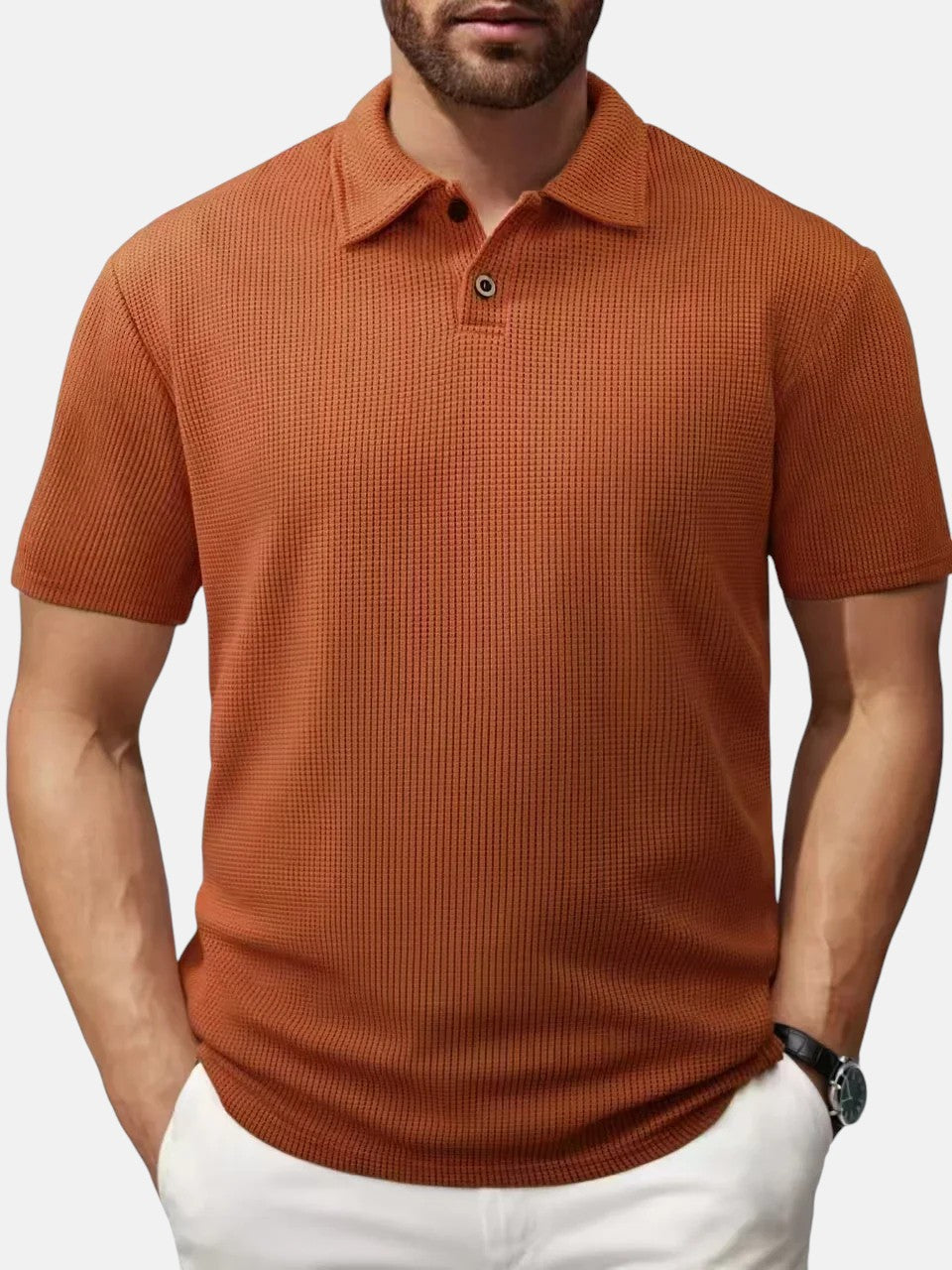 Mantente Fresco y Estiloso con nuestra Camisa Polo de Punto Transpirable. Actualiza tu guardarropa de verano con esta camisa polo de manga corta que combina un diseño texturizado transpirable y un cuello clásico.