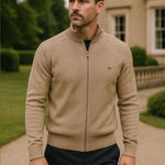Jacquard™ | Cárdigan de punto con cremallera de Cross & Crown fusiona la elegancia atemporal con una artesanía consolidada. El intrincado diseño jacquard y la elegante cremallera aportan sofisticación, mientras que el acabado liso irradia exclusividad y versatilidad. Confeccionado con una mezcla de tejidos premium compuesta por 95% algodón y 5% elastano, esta prenda ofrece suavidad, transpirabilidad natural y una ligera elasticidad que se adapta cómodamente al cuerpo sin perder su forma. Los detalles de punto trenzado y canalé realzan el trabajo artesanal y crean una profundidad estructural, haciendo de este cárdigan una pieza ideal tanto para eventos formales como para looks casuales del día a día. Con disponibilidad limitada y un diseño atemporal, Jacquard™ representa una inversión en los elementos más duraderos del armario y una verdadera pieza de colección para el cliente que valora la calidad.